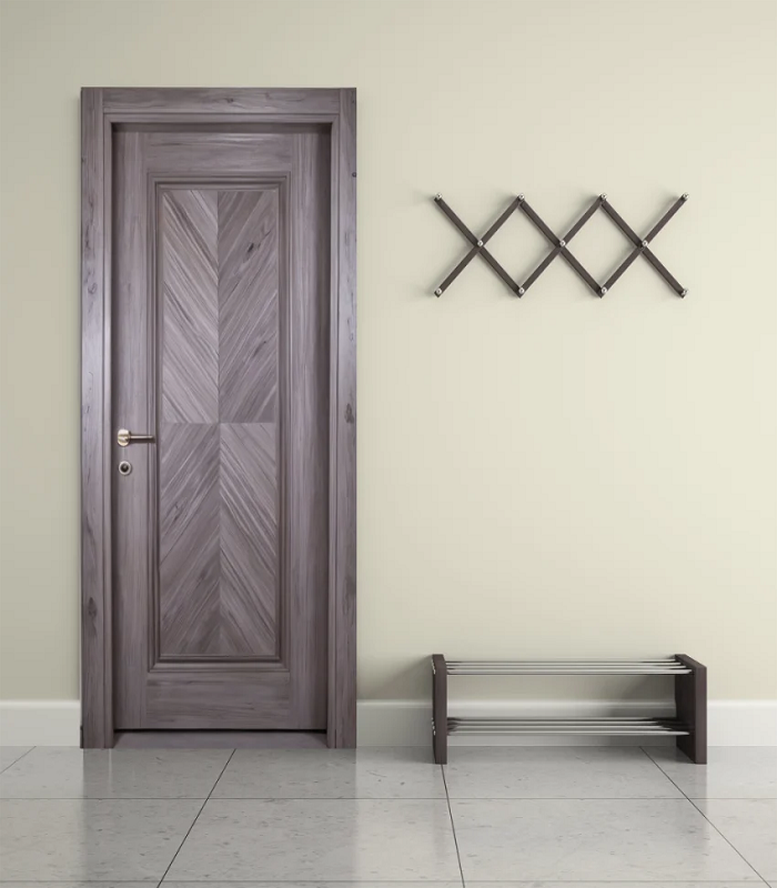 الخامة: باب مصفح معدن مع تشطيب خشبي يعطي مظهر الخشب الطبيعي.