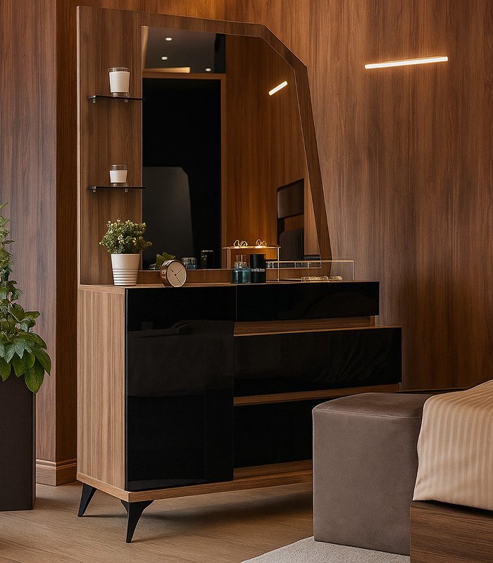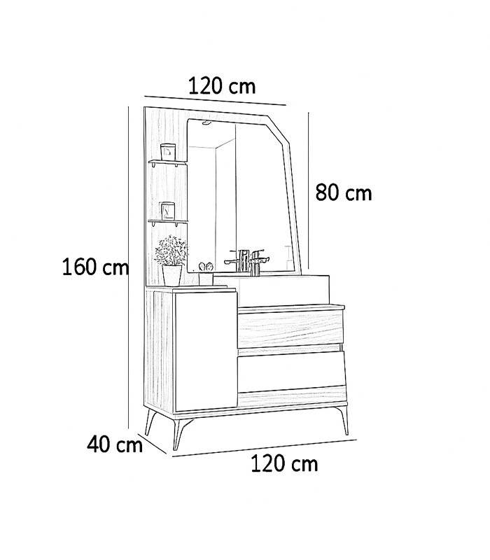 التسريحة تشمل 3 أدراج + ضلفة + مرآة (80 × 120 سم)