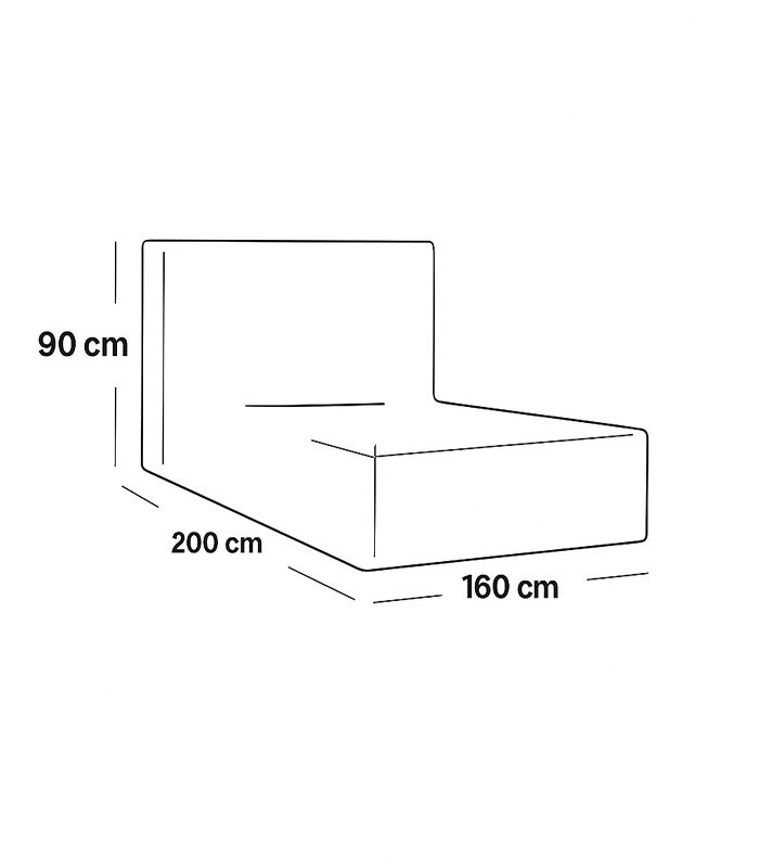 أبعاد السرير: الطول 200 سم × العرض 160 سم × الارتفاع 90 سم